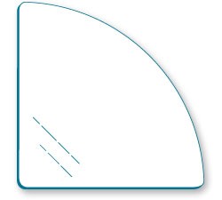QUART DE ROND EN VERRE TREMPÉ 14" X 3/16" BORD NON-COUPANT